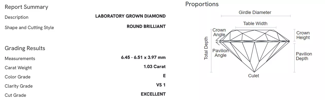 Diament laboratoryjny 1.03 Ct | E | VS1