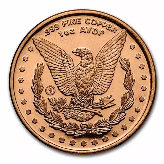 9Fine Mint 1 uncja miedzi to miedziany walor przedstawiający najbardziej znany motyw na amerykańskich monetach- Morgan Dollar.