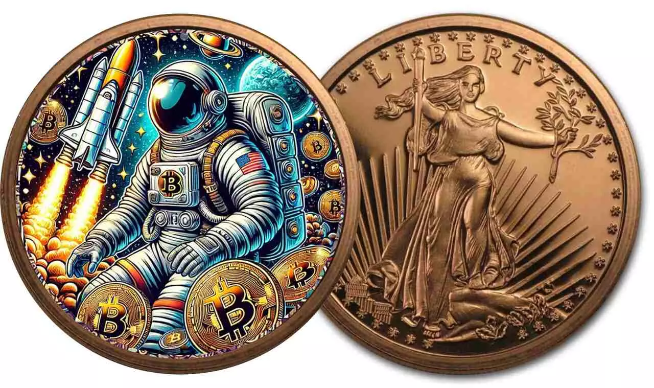 Miedziana moneta Cosmic Miner Saint-Gaudens 1 uncja miedzi Kolorowana