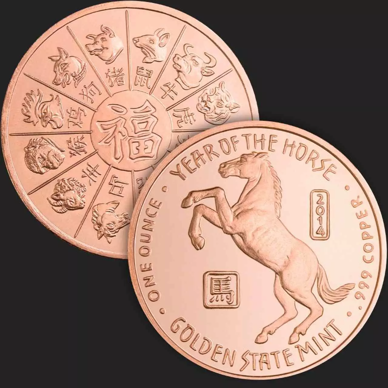 Year of the Horse został wybity z miedzi najwyższej próby i waży jedną uncję.