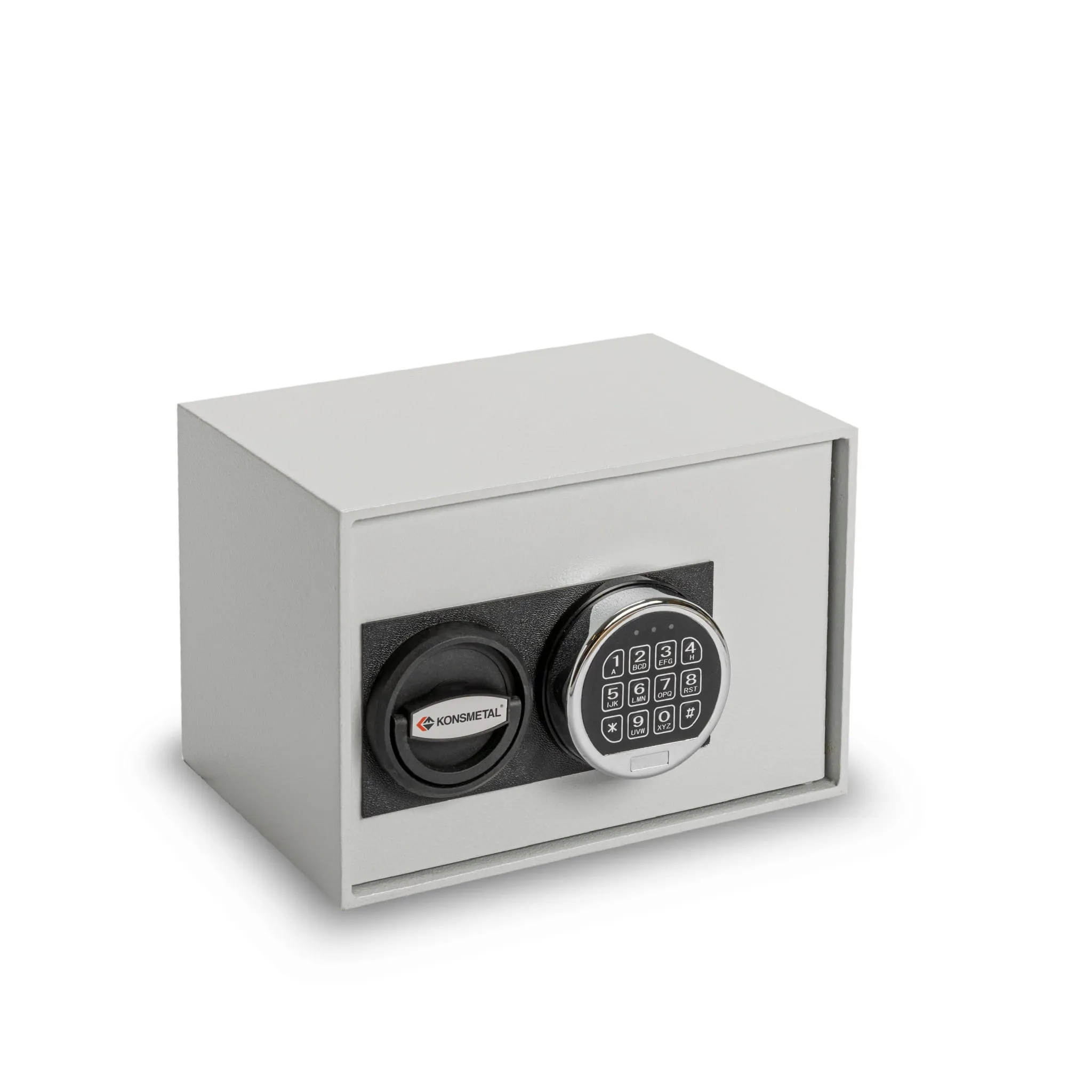 Sejf posiada otwory montażowe, dzięki którym można go trwale przytwierdzić do podłoża lub ściany, co zwiększa poziom zabezpieczenia. Dzięki kompaktowym wymiarom łatwo go umieścić w szafie, garderobie lub zabudowie meblowej, bez zajmowania dużo miejsca. Elektroniczny zamek klasy A zapewnia szybkie otwieranie bez konieczności posługiwania się kluczem.
