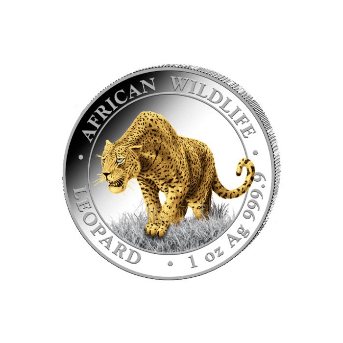 Leopard został wybity ze srebra próby 999. Moneta o wadze jednej uncji w wersji kolorowanej.