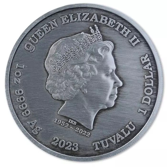 Ten walor kolekcjonerski zawiera jedną uncję czystego srebra próby 999. Moneta posiada antyczne wykończenie.