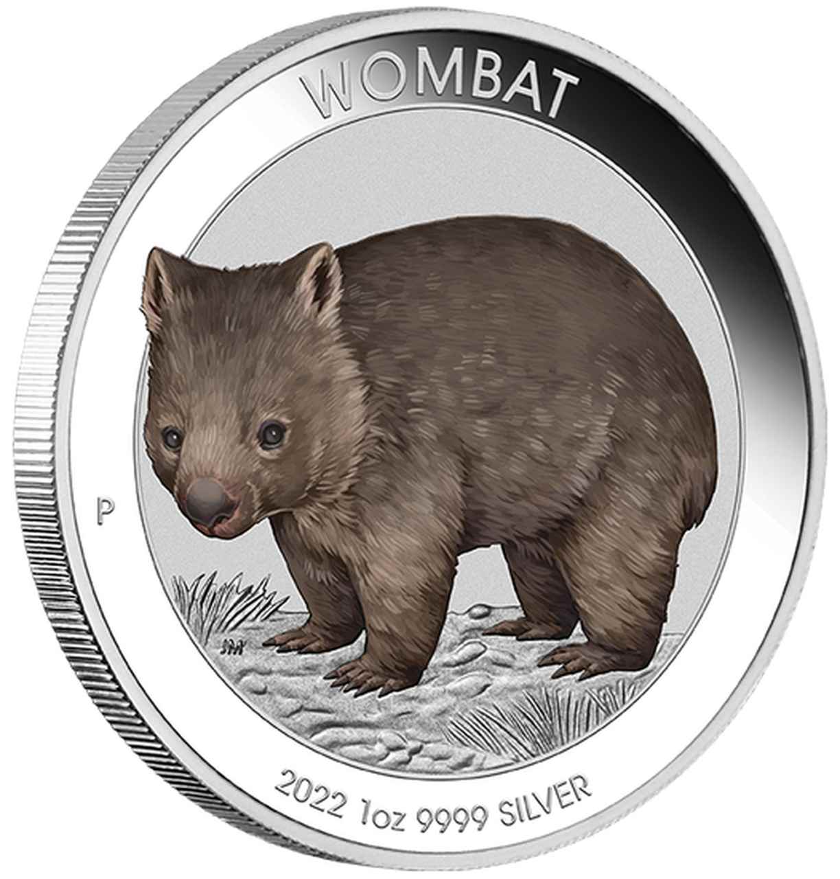 Australijski Wombat to srebrna moneta kolekcjonerska wybita z czystego srebra próby 999 o wadze jednej uncji.