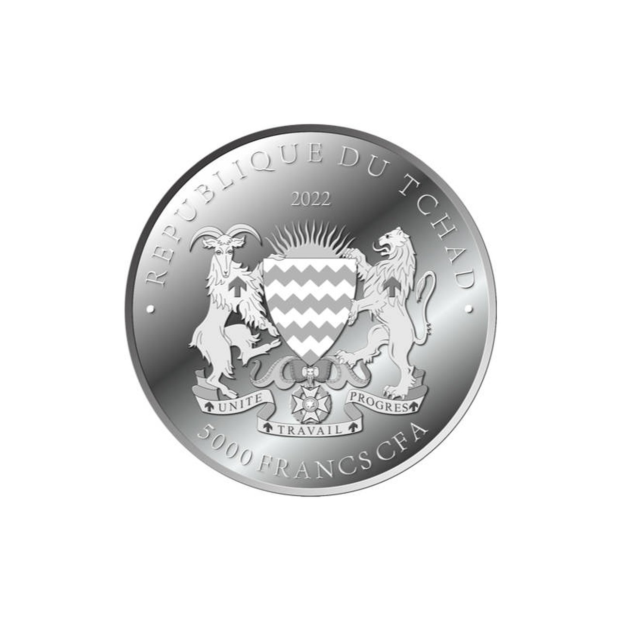Awers monety przedstawia herb Czadu oraz rok wybicia oraz nominał monety.