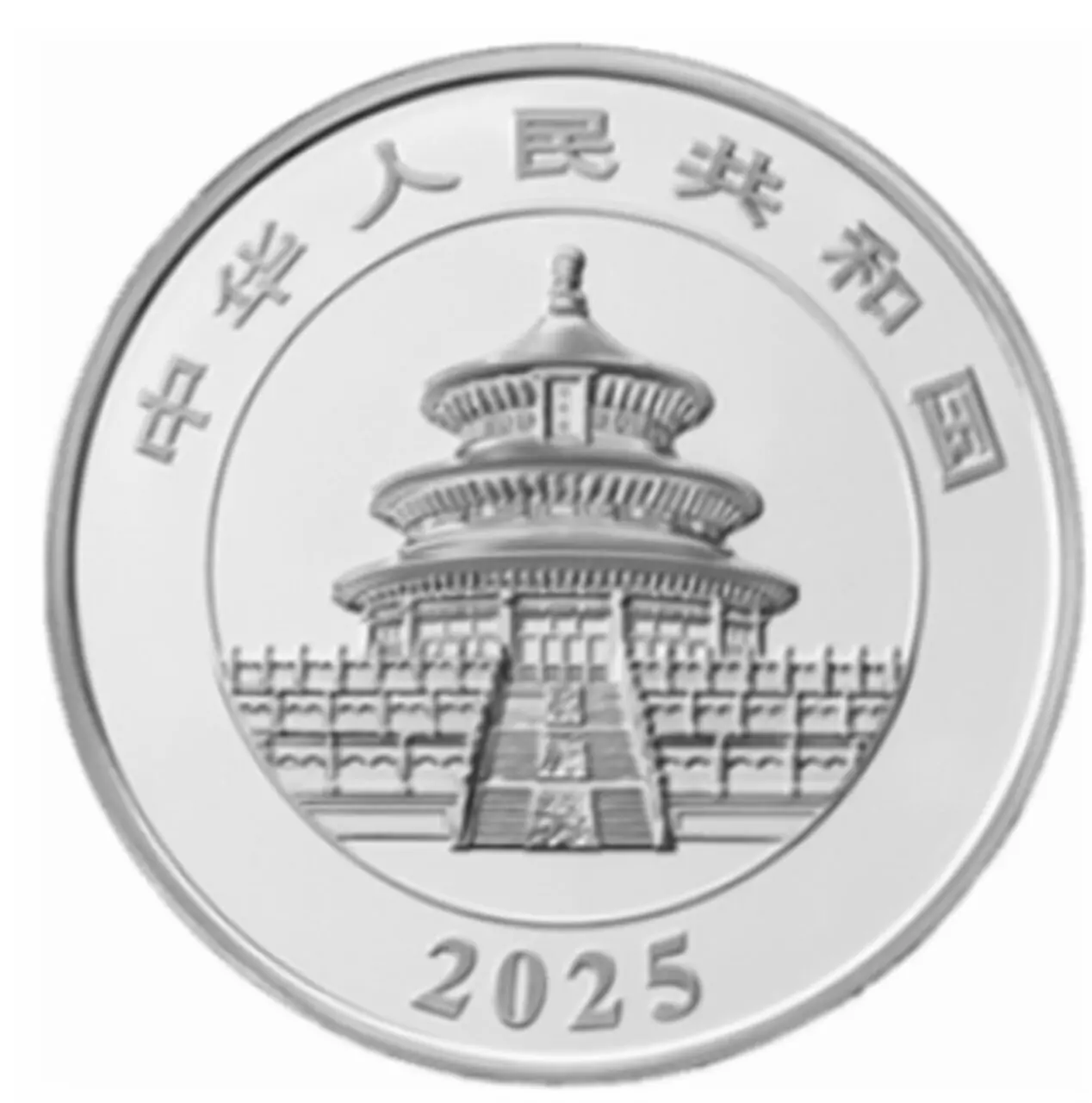 Rewers monety przedstawia majestatyczne pandy w swoim naturalnym środowisku. Edycja na rok 2025 ukazuje nowe, oryginalne wzornictwo, które podkreśla piękno i spokój tego niezwykłego zwierzęcia. Tło z bambusowymi liśćmi oraz lustrzany efekt techniki PROOF dodają głębi i elegancji. Na awersie znajduje się Świątynia Nieba w Pekinie, tradycyjny symbol tej serii, otoczona chińskimi inskrypcjami.