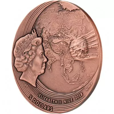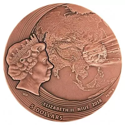 Rewers ukazuje Ziemię pękniętą po tym, jak meteoryt spadł na ziemię. Kolory przypominają ziemię pokrytą kurzem i spalonym ogniem.