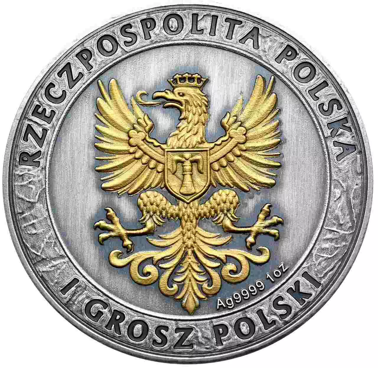 Awers przedstawia pozłoconego Orła Rzeczpospolitej.