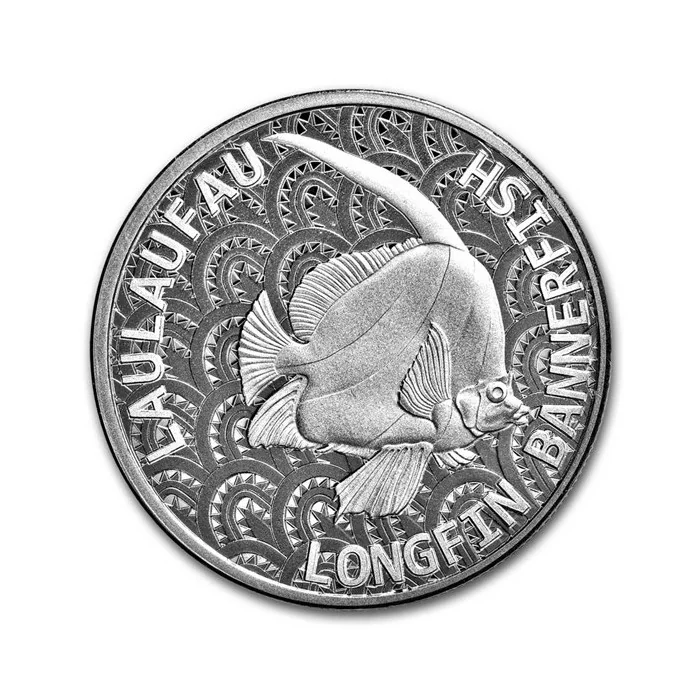Longfin Bannerfish to srebrny walor o wadze jednej uncji wybity ze srebra najwyższej próby przez Scottsdale Mint