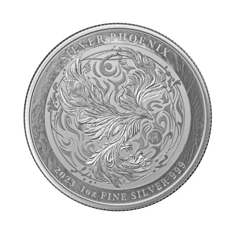 Rewers przedstawia piękny wizerunek feniksa pośród płomieni, napis „Silver Phoenix”, rocznik, próbę oraz wagę monety.