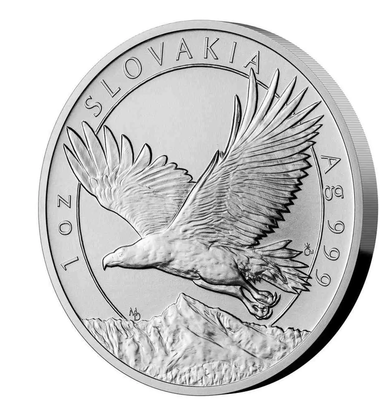 Czech Mint przedstawia monetę z wizerunkiem orła- Slovak Eagle. Slovak Eagle to piękny drapieżny ptak latający po niebie nad majestatycznymi Tatrami i wypatrujący swojej ofiary. Slovak Eagle to narodowy symbol Słowacji, ich dokonań, zwycięstw czy wolności. Orzeł odnosi się również do słowackiej tradycji religijnej.