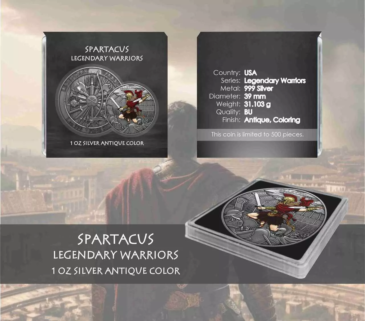 Spartacus Legendary Warriors 1 uncja srebra Antique Color