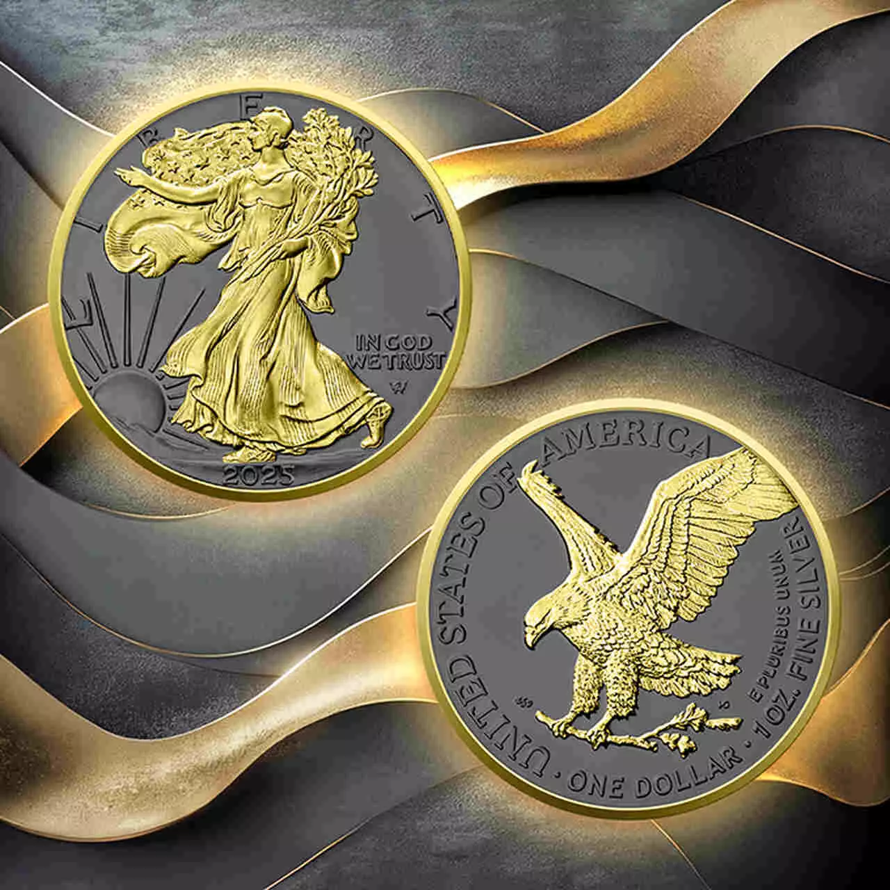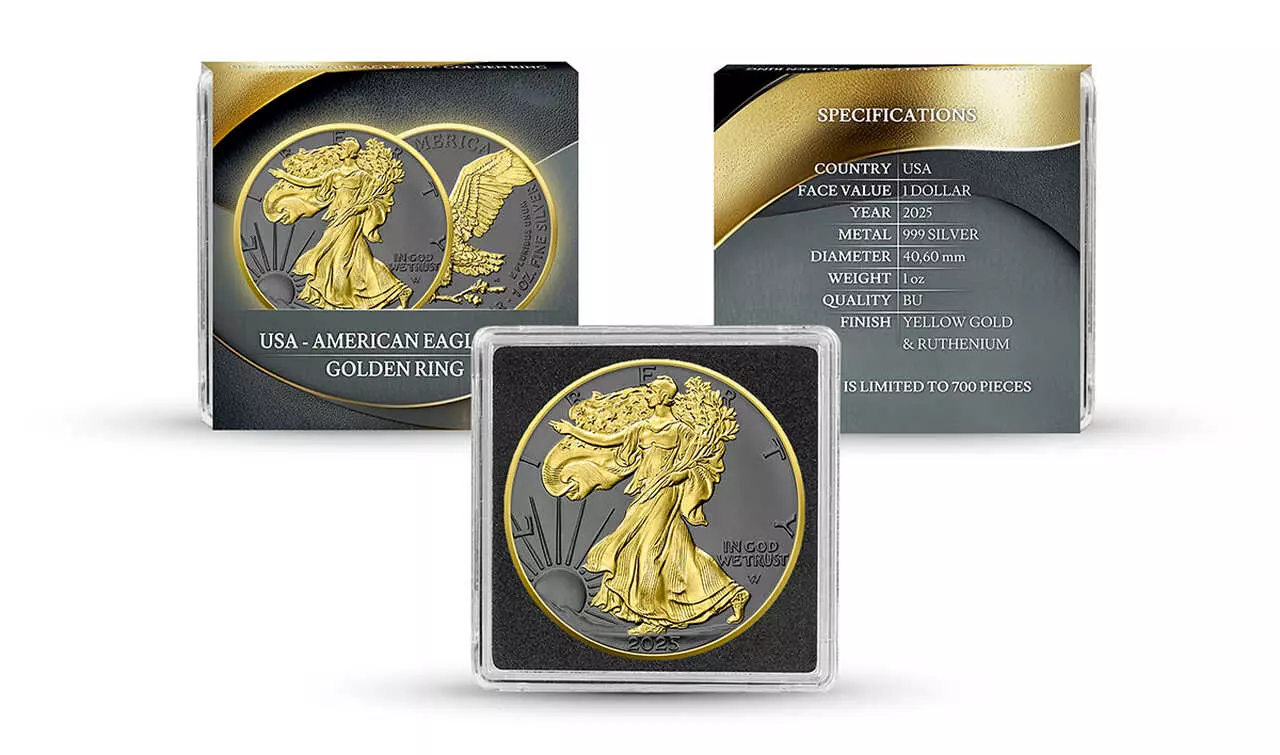 Przedstawiamy najnowsze wydanie srebrnej monety bulionowej American Eagle w wersji Golden Ring. Seria Golden Ring, łącząca w sobie złoto i czerń, cieszy się sporym zainteresowaniem wśród inwestorów. American Eagle to jedna z najbardziej rozpoznawalnych i cenionych monet bulionowych na świecie. Emitowana przez United States Mint od 1986 roku, cieszy się ogromnym zainteresowaniem zarówno wśród inwestorów, jak i kolekcjonerów.