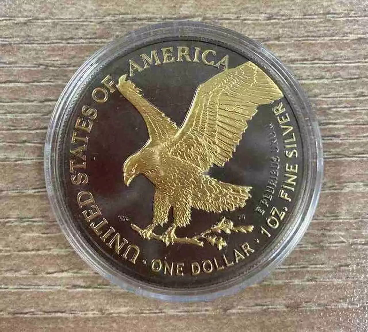 Rewers przedstawia pozłocony wizerunek orła trzymającego w szponach gałąź oliwną, dzięki czemu moneta nabiera wyjątkowej głębi.