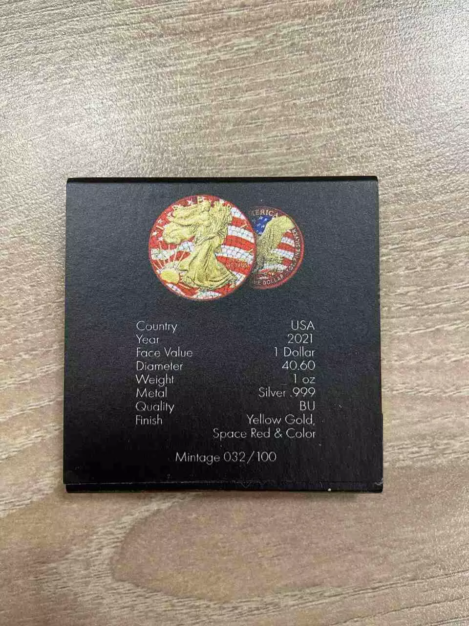 Amerykański Orzeł w wersji Mosaic Space Red Edition został wybity ze srebra najwyższej próby i waży jedną uncję, co czyni monetę nie tylko atrakcyjnym elementem kolekcji, ale również wartościową formą ochrony kapitału. Moneta została wykończona przy pomocy żółtego złota, posiada kolorowy nadruk oraz została wzbogacona o efekt Red Space.