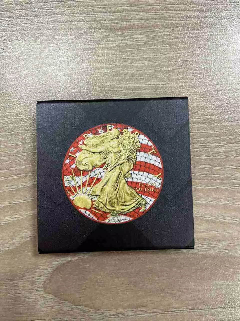 Awers przedstawia pozłoconego orła na tle flagi amerykańskiej.