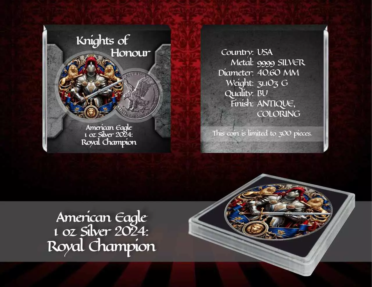 Srebrna moneta Amerykański Orzeł 1 uncja srebra 2024 Knights of Honour Royal Champion