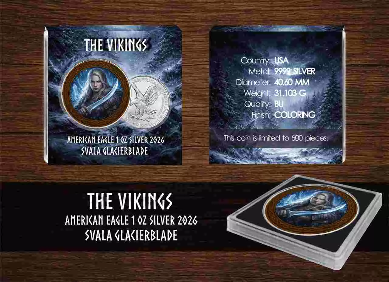 Svala Glacierblade to kolejna odsłona srebrnej monety kolekcjonerskiej pochodzącej z serii The Vikings. Seria The Vikings inspirowana jest nordyckimi legendami i ukazuje wizerunki znanych wikingów. Kolejna moneta z tej serii przedstawia postać wojowniczej tarczowniczki. Moneta stanowi ciekawą propozycję dla osób chcących połączyć bezpieczeństwo lokowania kapitału w srebrze z unikalnym, wyrazistym designem.
