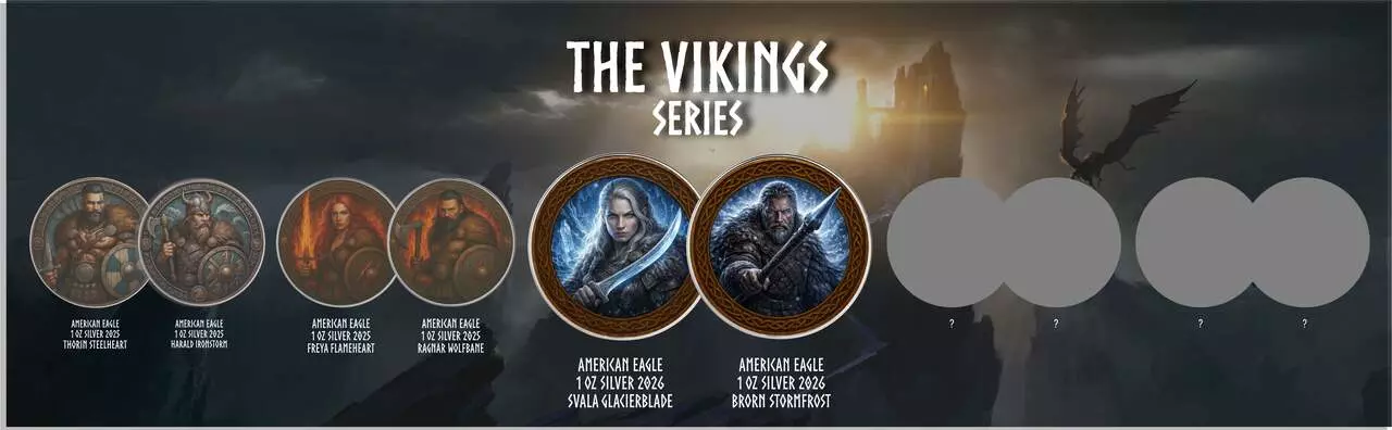 Srebrna moneta Amerykański Orzeł 1 uncja Srebra 2026 The Vikings Svala Glacierblade