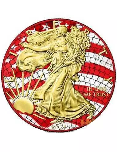 Amerykański Orzeł 25th Anniversary of Pontificate John Paul II to srebrny walor próby 999 o wadze jednej uncji. Moneta została pozłocona prawdziwym złotem i wzbogacona o kolorowy nadruk UV, by nadać jej nowego, głębokiego przesłania.
