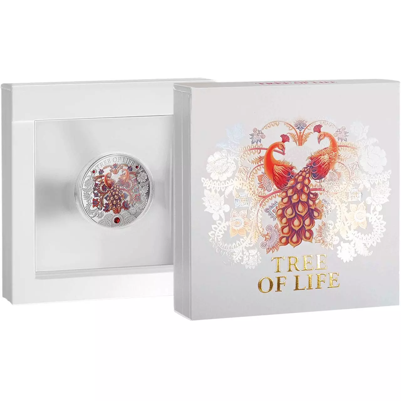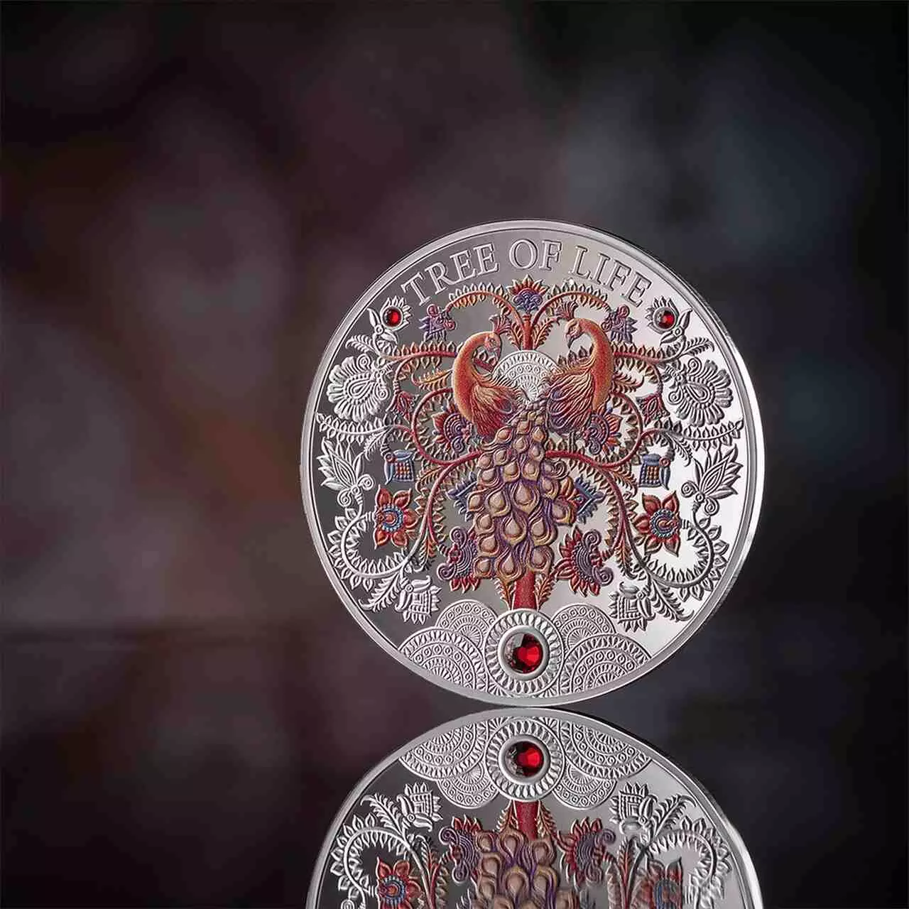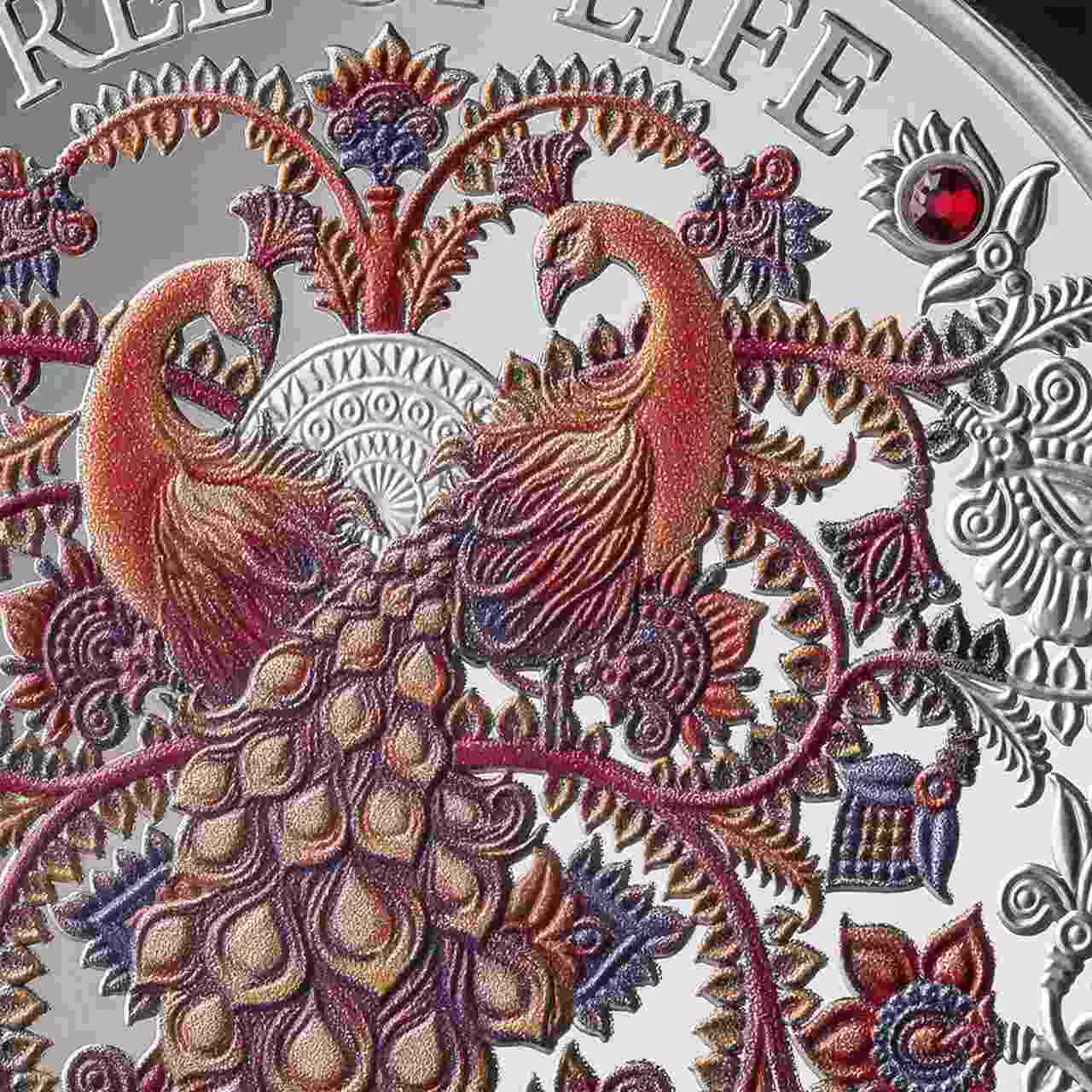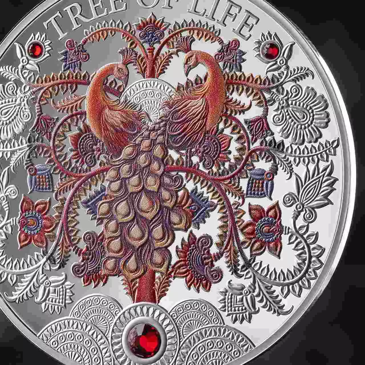 Autumn Tree of Life zawiera jedną uncje czystego srebra najwyższej próby. Moneta posiada kolorowy nadruk oraz wkładki kryształkowe.