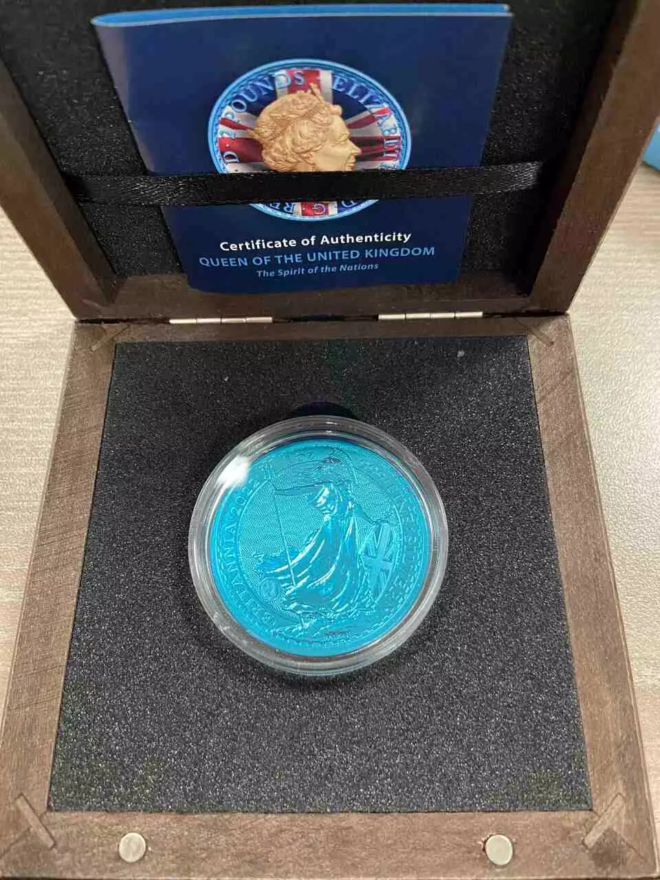 Britannia Elizabeth II The Spirit of the Nations została wybita ze srebra najwyższej próby, co zapewnia jej wysoką wartość inwestycyjną. Moneta wyróżnia się unikalnym projektem, który dodaje monecie wartości artystycznej i numizmatycznej.