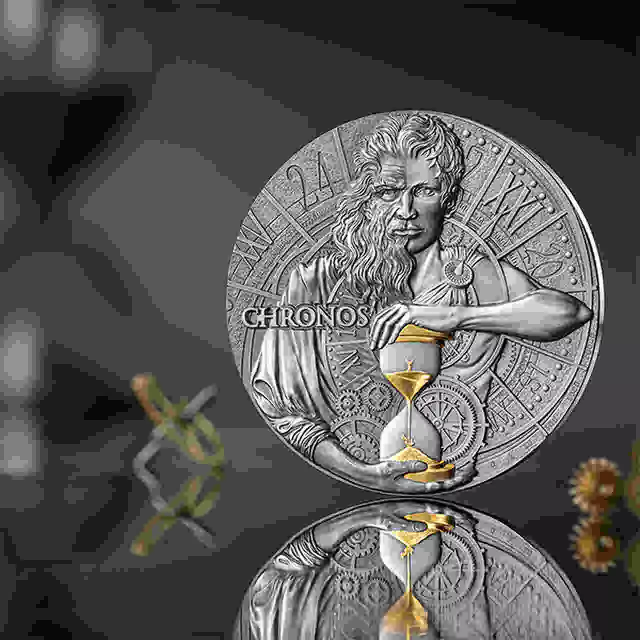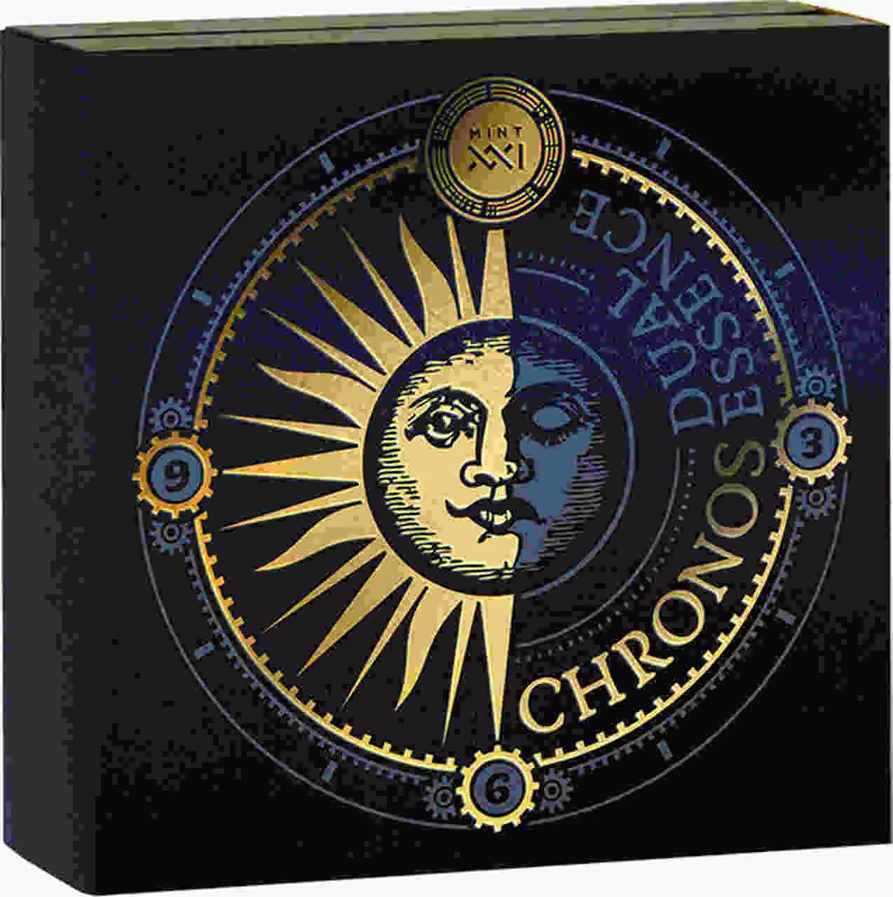 Chronos to pierwsza odsłona monety z serii Dual Essence, wyemitowanej przez MINT XXI. Inspiracją dla projektu jest postać Chronos – w mitologii greckiej uosobienie czasu, siły nieuchronnej i wszechobecnej. Moneta odnosi się do dwoistej natury czasu. Czas odbiera młodość, lecz daje doświadczenie. Kończy pewne etapy, ale otwiera nowe możliwości.