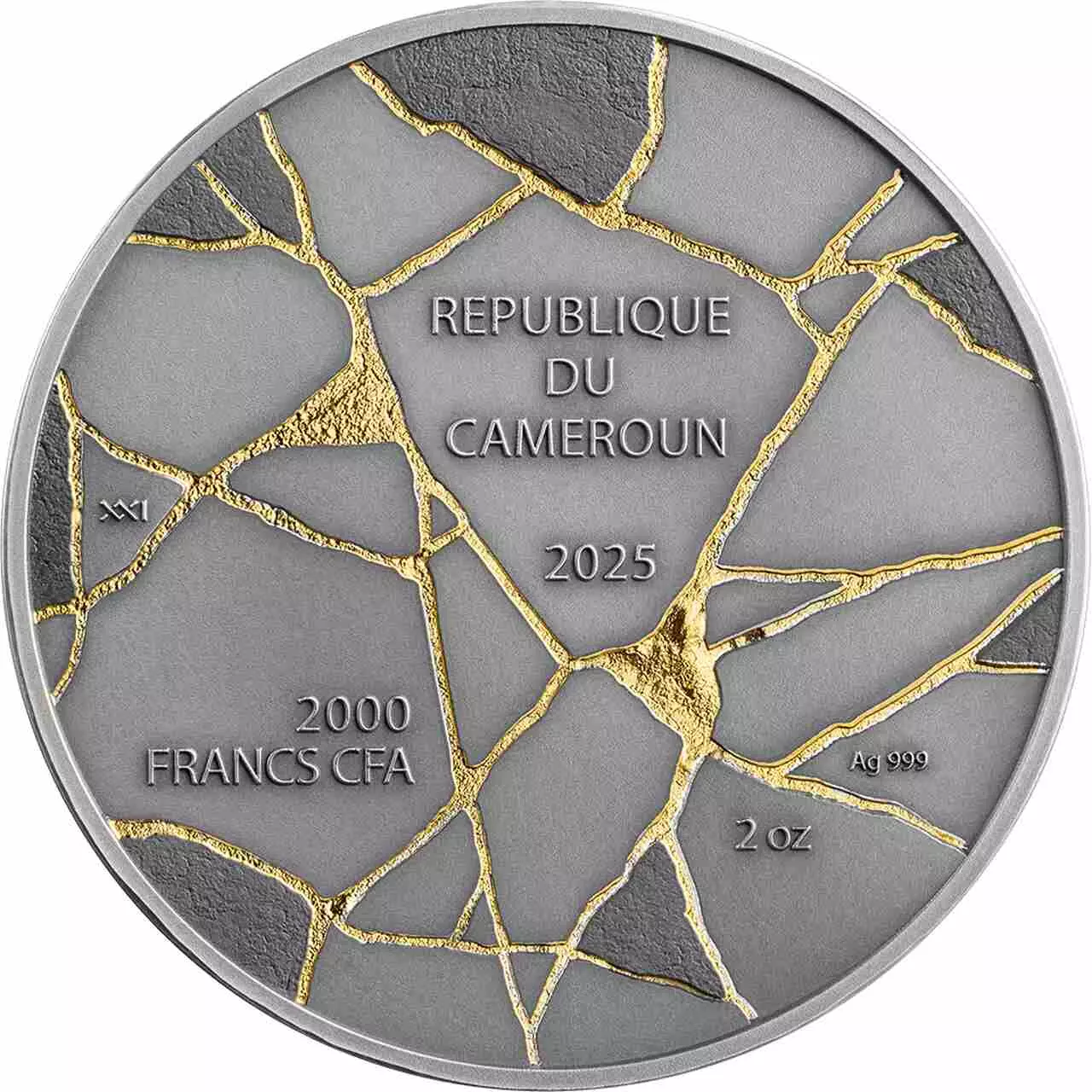 Rewers monety ukazuje fragment słynnej rzeźby Dawida, wzbogacony motywem kintsugi, gdzie delikatne „pęknięcia” w jego wizerunku zostały wypełnione złotem. Połączenie klasycznej sztuki renesansowej z filozofią kintsugi tworzy głęboko symboliczną i estetyczną całość. Tło zdobią subtelne ornamenty nawiązujące do japońskiej tradycji oraz tekstury przypominające spękane ceramiki.