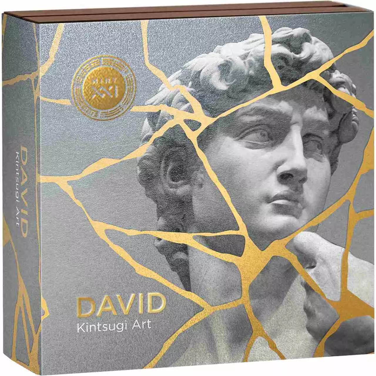 David to srebrny walor kolekcjonerski rozpoczynający serię Kintsugi Art. Kolekcja Kintsugi Art czerpie inspirację z ponadczasowej japońskiej sztuki Kintsugi, w której zniszczone przedmioty są delikatnie odnawiane złotem lub innymi metalami szlachetnymi, przekształcając ich wady w uderzające cechy elegancji. Kintsugi to filozofia, która celebruje odporność i sztukę transformacji, podnosząc niedoskonałości do rangi symboli siły i wyjątkowości.