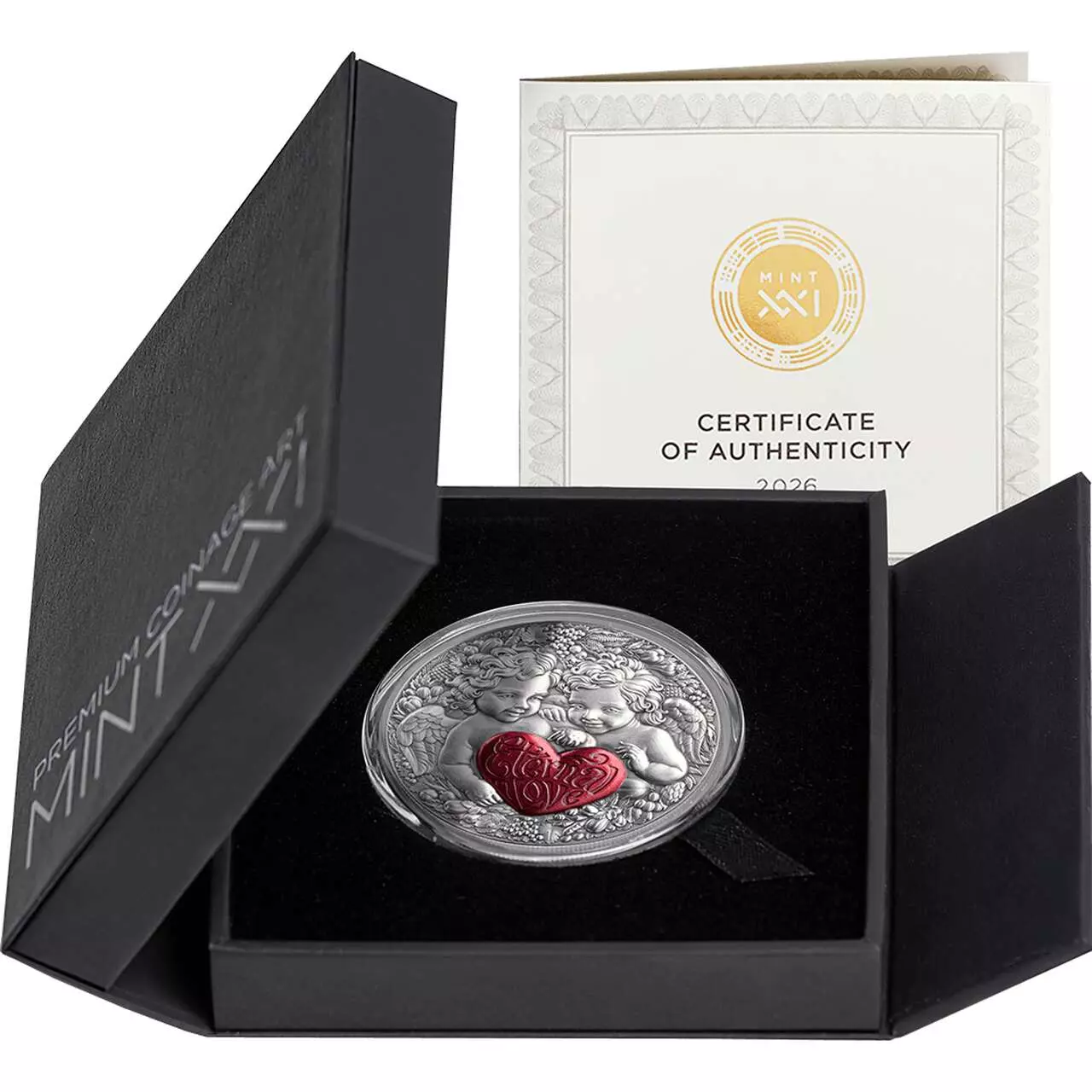 Ten srebrny walor dostarczany jest w drewnianym pudełku wraz z certyfikatem autentyczności.