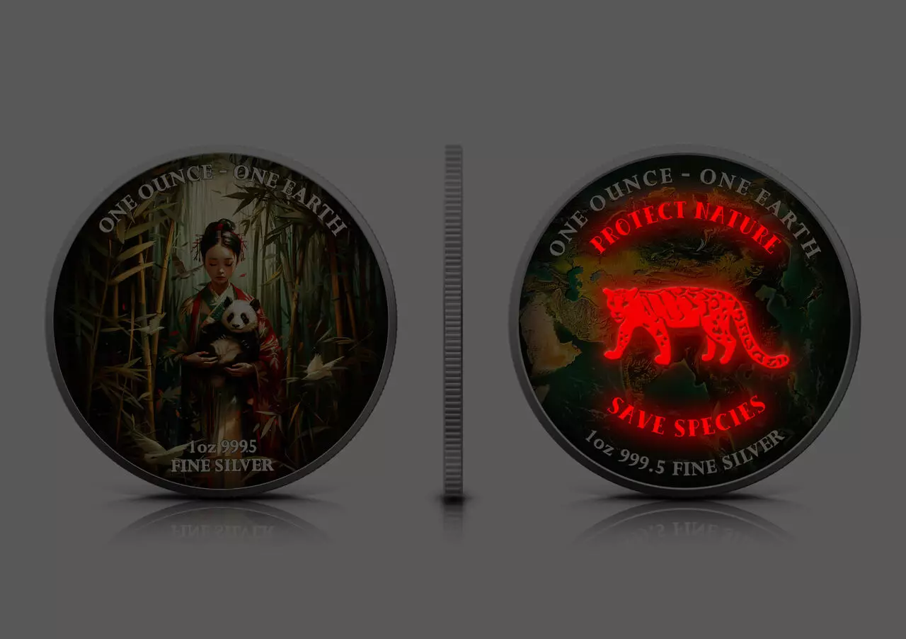 Earth Asia to srebrna moneta Fiji Earth próby 999, która została poddana dwustronnemu kolorowaniu. Moneta o wadze jednej uncji wzbogacona została o efekt UV, który po kontakcie ze światłem ukazuje zagrożony wizerunek zwierzęcia.