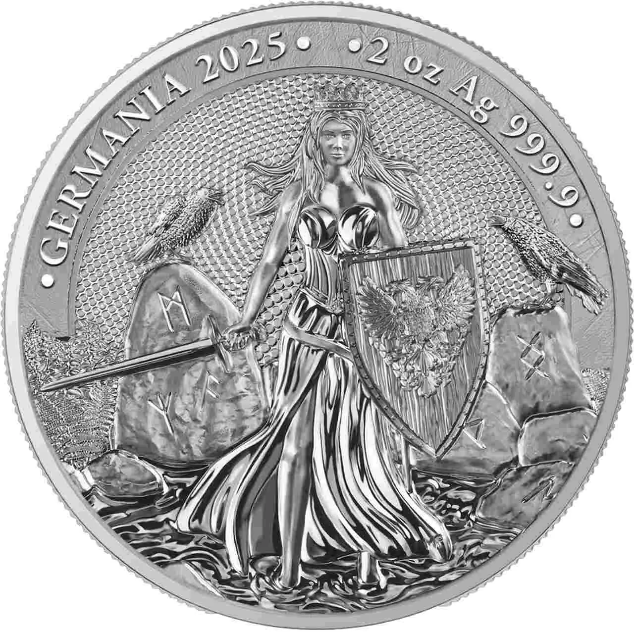Germania rocznik 2025 zawiera jedną uncję czystego srebra najwyższej próby. Za produkcję monety odpowiada Germania Mint.