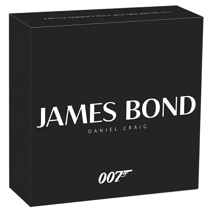 James Bond Daniel Craig to srebrny walor próby 999 o wadze jednej uncji. Walor został wybity w standardzie proof oraz posiada kolorowy nadruk. Za produkcję monety odpowiada znana mennica Perth Mint.