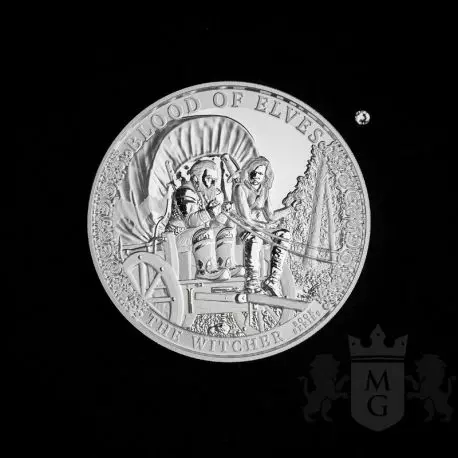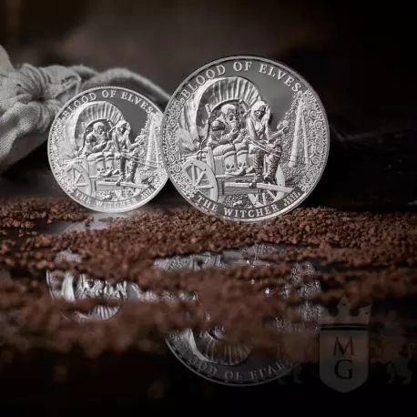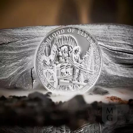 Krew Elfów to kolejna odsłona monety z bulionowej serii Wiedźmin. Cała seria ukazuje nam przygody Geralta z Rivii autorstwa Andrzeja Sapkowskiego. Książka Krew Elfów została wydana w 1994 roku. W Krwi Elfów Ciri zostaje umieszczona w warowni Kaer Morhen, gdzie dziewczynka przechodzi swoje pierwsze szkolenie. Ponadto nasila się konflikt pomiędzy Królestwami Północy a Cesarstwem Nilfgaardu. Walor łączy w sobie świat pełen magii, potworów i rycerskich pojedynków z wartością inwestycyjną.