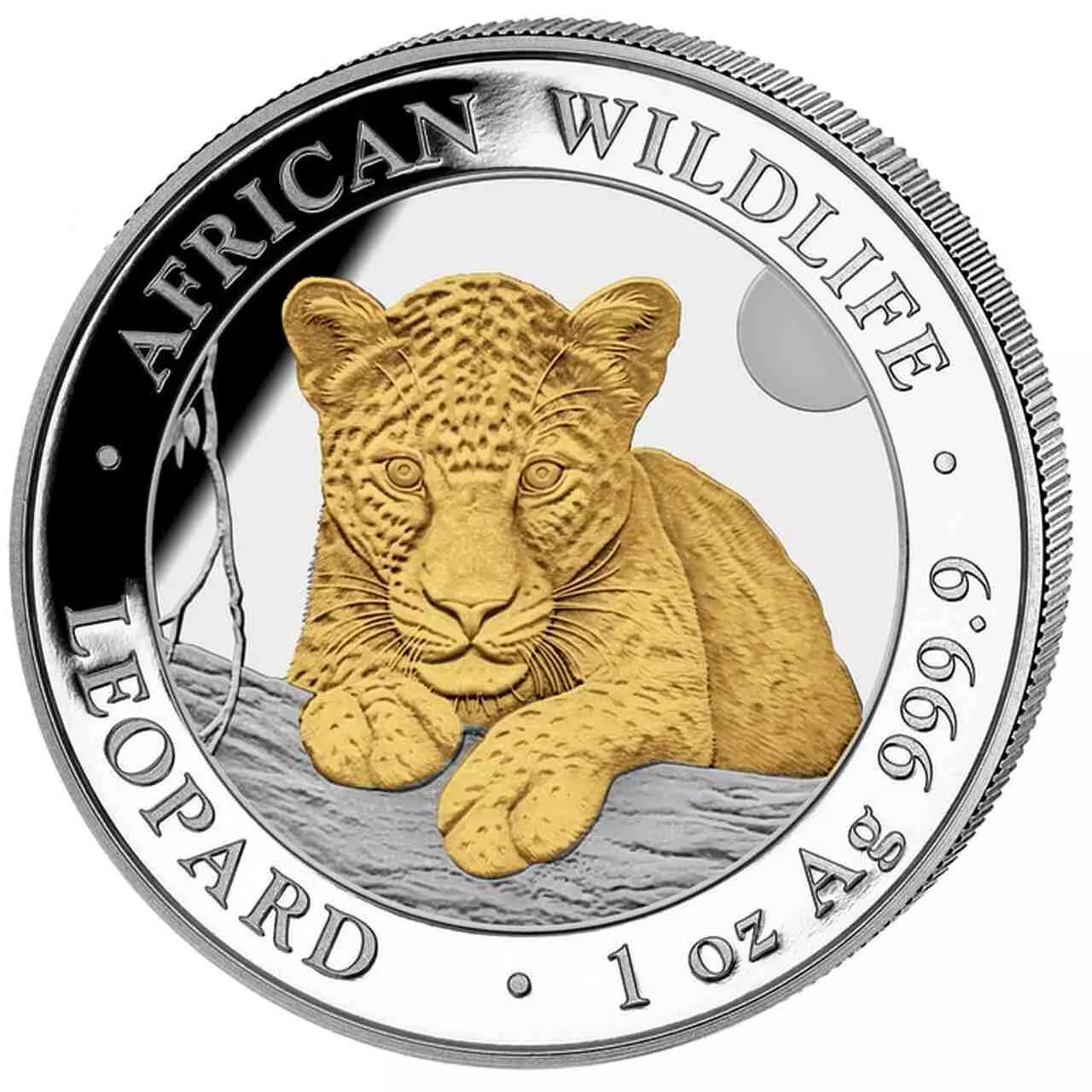 Srebrna moneta Leopard African Wildlife 1 uncja srebra 2025 Pozłacany