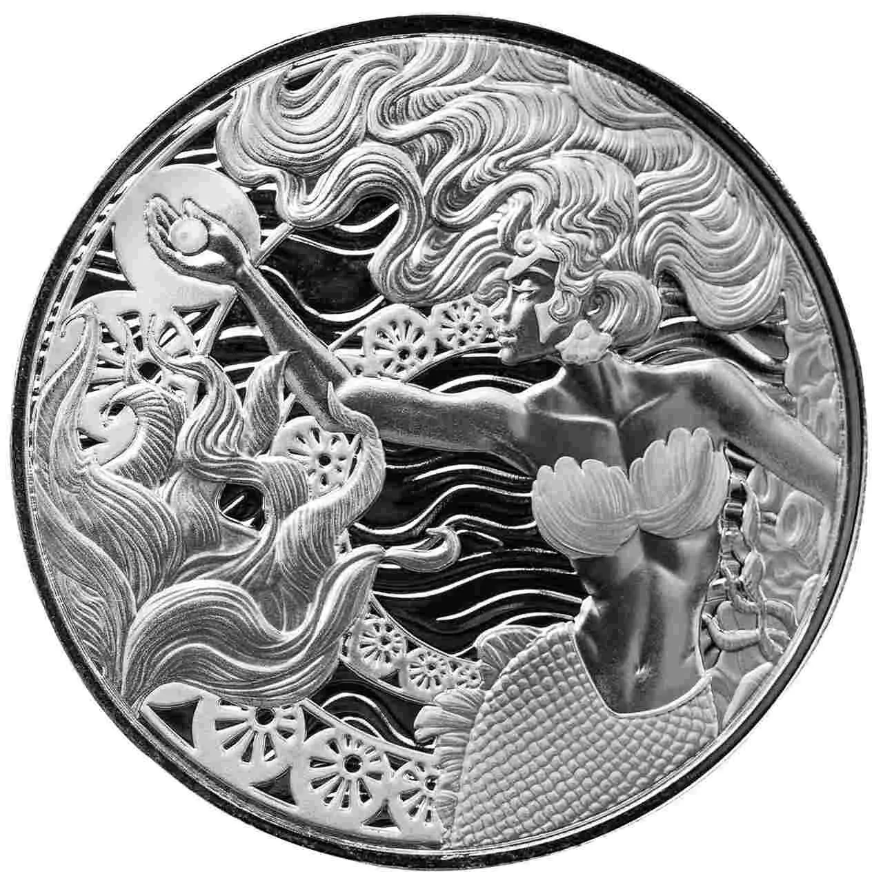 Mermaid and Pearl została wybita ze srebra najwyższej próby przez Scottsdale Mint, Walor o wadze jednej uncji łączy w sobie piękno morskiej mitologii i kunszt menniczy, stanowiąc doskonałą formę lokaty kapitału w metale szlachetne.