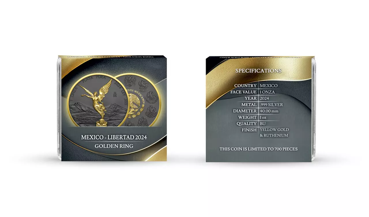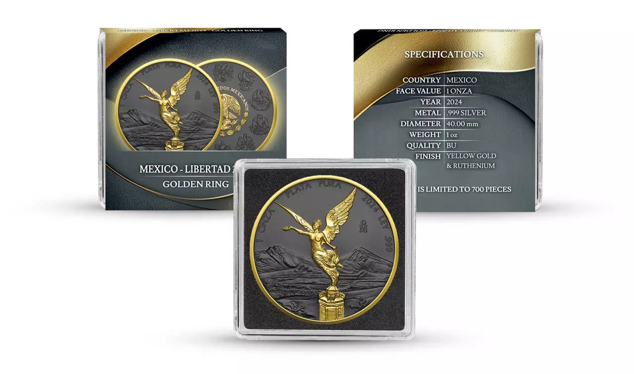 Przedstawiamy kolejne wydanie monety z serii Golden Ring- Mexico Libertad. Moneta z serii Golden Ring są pokryte rutenem oraz posiadają selektywne złocenie, co czyni monetę niezwykle ekskluzywną. Mexico Libertad od lat cieszy się ogromnym uznaniem zarówno wśród inwestorów, jak i kolekcjonerów na całym świecie. Moneta jest uosobieniem meksykańskiego dziedzictwa, historii i kultury.