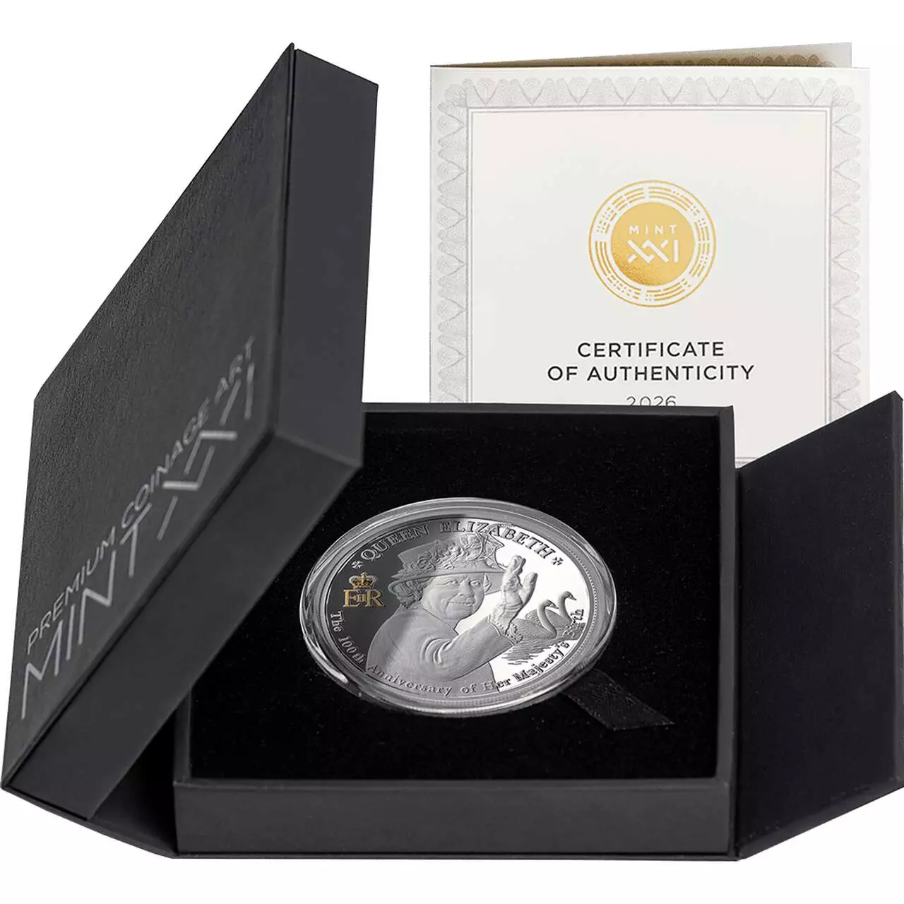 Queen Elizabeth II: The 100th Anniversary of Her Majesty’s Birth została wybita ze srebra najwyższej próby w jakości proof w limitowanej edycji wynoszącej zaledwie 2026 sztuk. Moneta stanowi stabilny i elegancki element każdej kolekcji numizmatycznej.