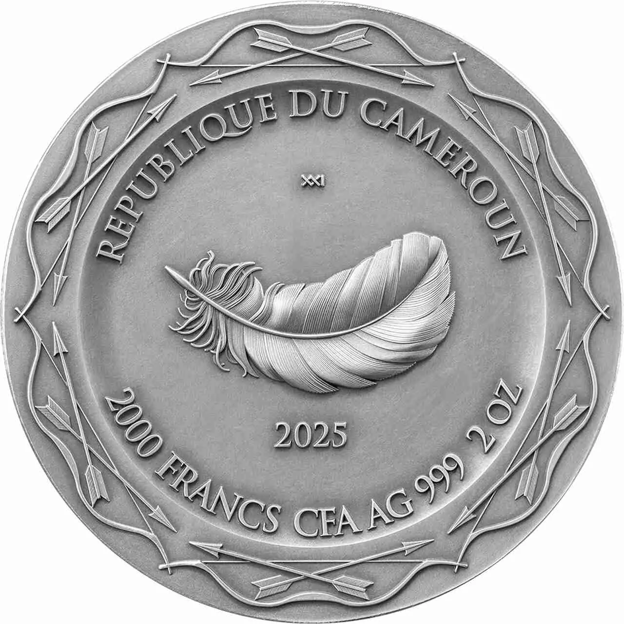 Awers przedstawia ptasie pióro oraz informacje o monecie.