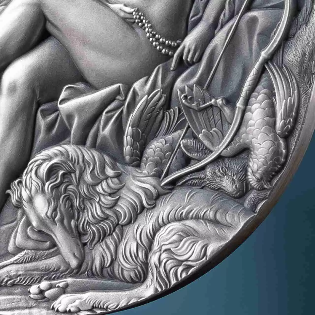 Resting Diana to srebrny walor próby 999 o wadze dwóch uncji wybity w jakości High Relief. Ponadto moneta posiada antyczne wykończenie.