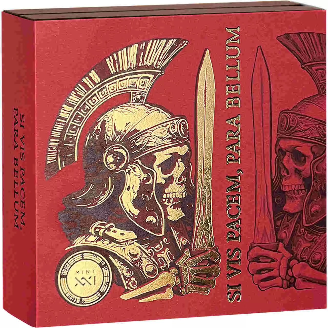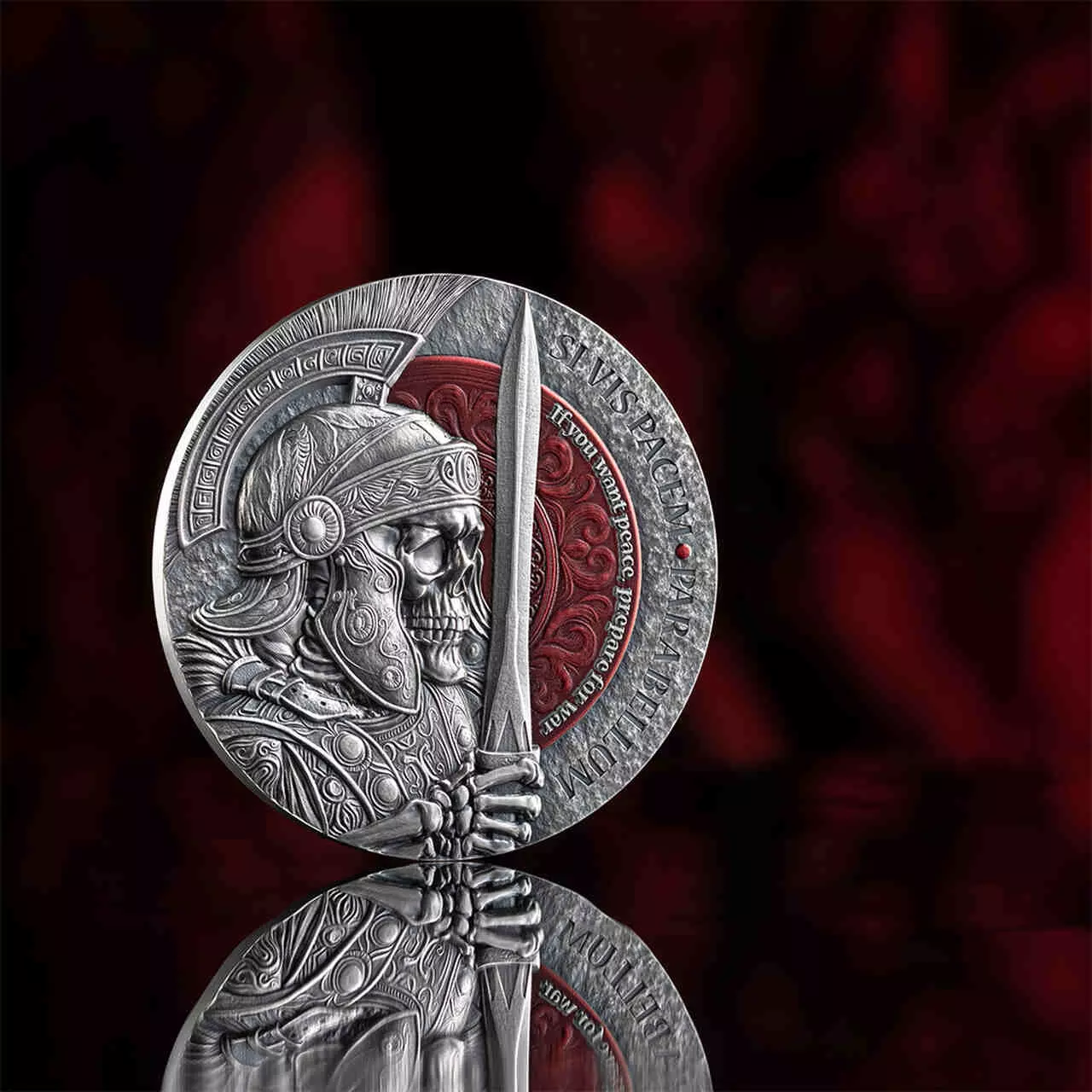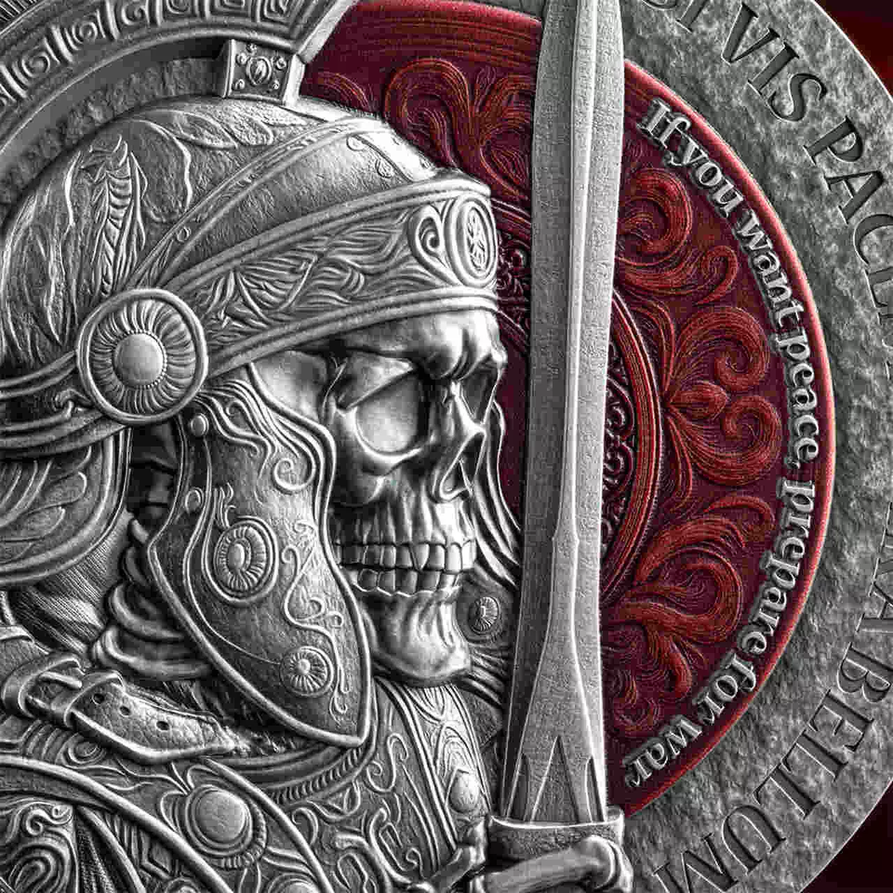 Si Vis Pacem, Para Bellum to srebrny walor próby 999 o wadze dwóch uncji wybity w jakości High Relief. Ponadto moneta posiada antyczne wykończenie oraz kolorowy nadruk.