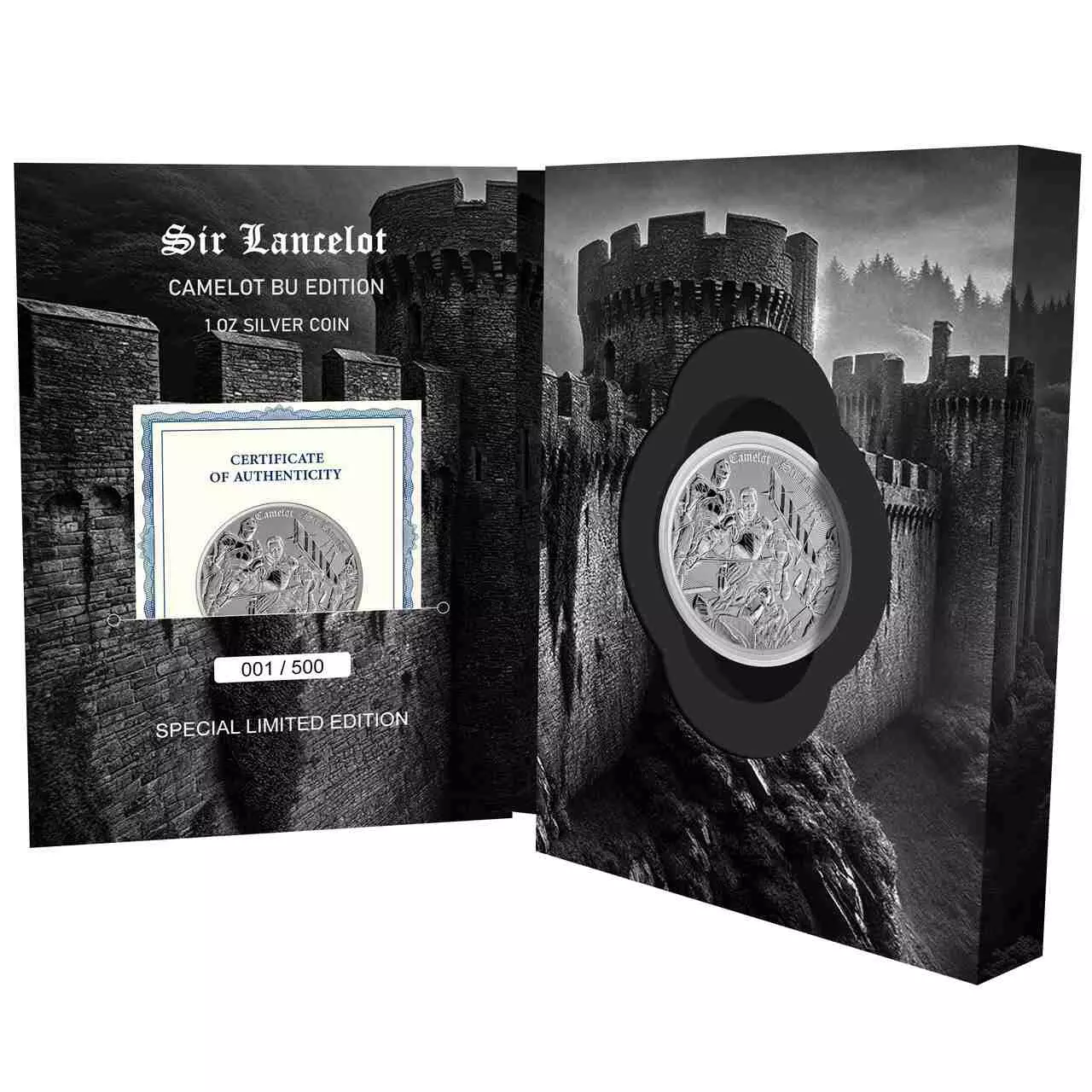 Sir Lancelot zawiera jedną uncję czystego srebra najwyższej próby oraz został zapakowany w dedykowany blister.