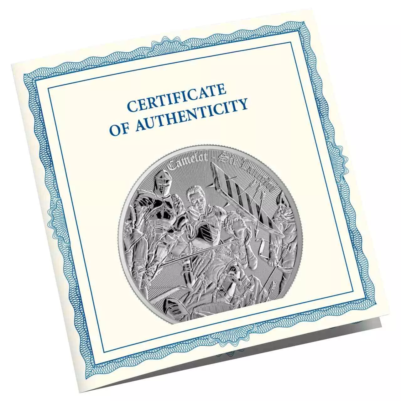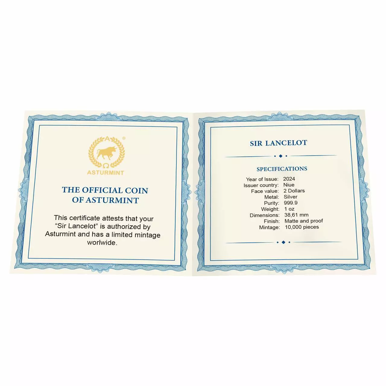Sir Lancelot został wybity ze srebra próby 999 przez Asturmint i waży jedną uncję trojańską.