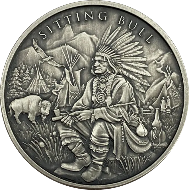 Srebrna moneta Sitting Bull Legendary Warriors 1 uncja srebra Antique