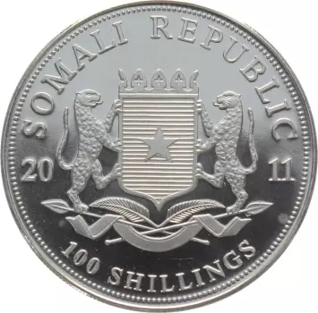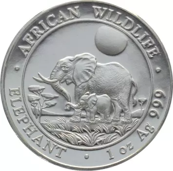 Słoń Somalijski rocznik 2011 zawiera jedną uncję czystego srebra najwyższej próby.