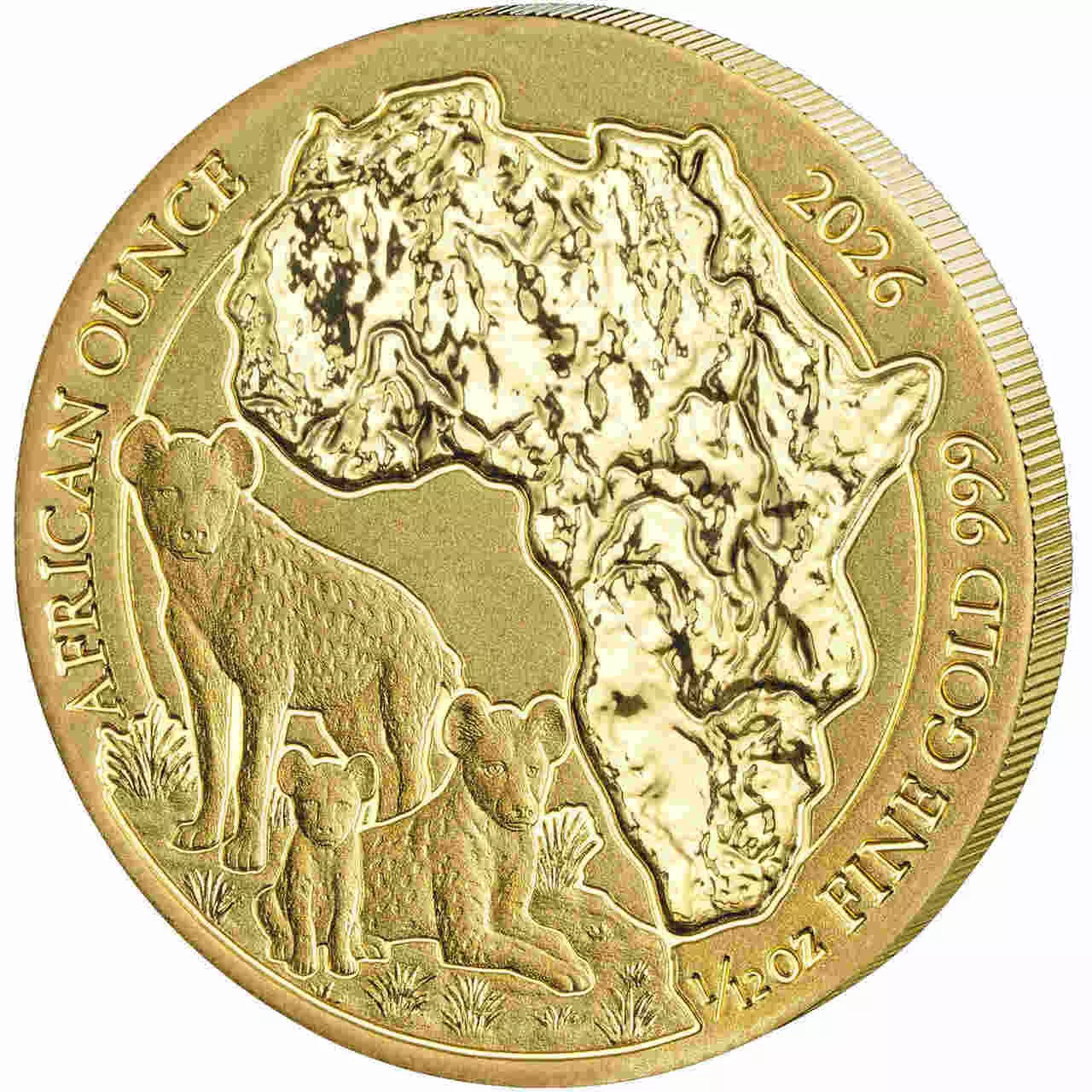 Moneta z 2026 roku została poświęcona hienie cętkowanej, najbardziej licznego drapieżnika na kontynencie afrykańskim. Mimo swojego kontrowersyjnego wizerunku hieny są wysoko społecznymi zwierzętami i jednymi z najbardziej inteligentnych drapieżników zamieszkujących ten kontynent. Zwierzęta te spożywają praktycznie każdą część swojej ofiary. Hiena od wieków stanowi symbol przetrwania, adaptacji i instynktu.