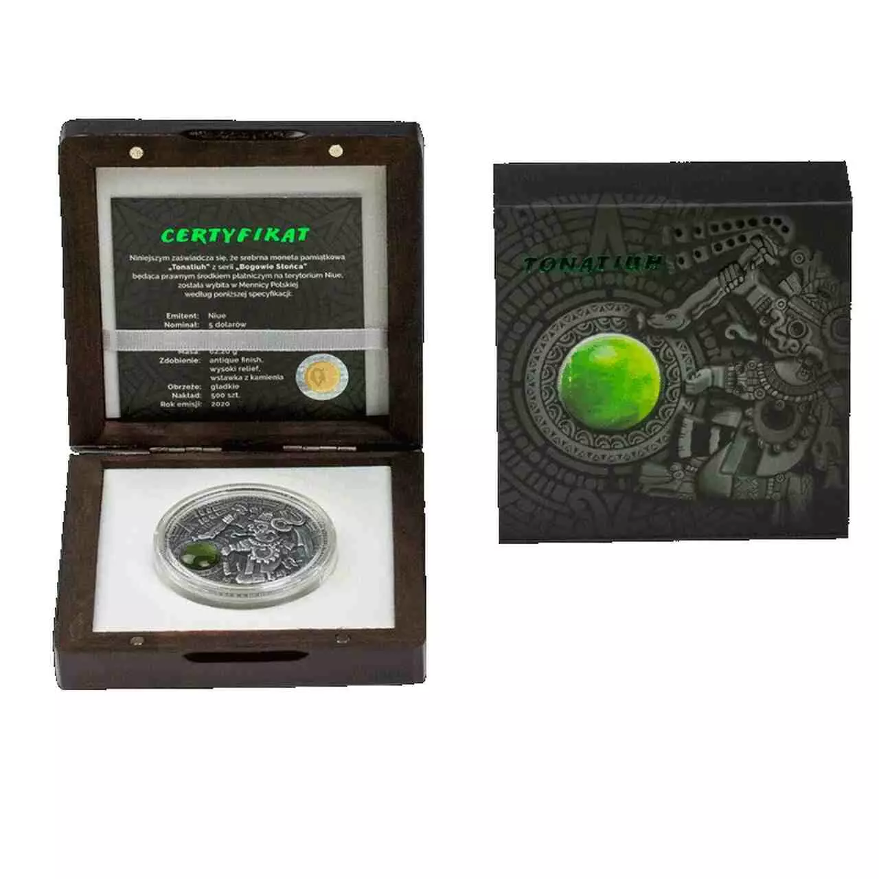 Znany producent metali szlachetnych Mennica Polska przedstawia pierwsze wydanie z serii Bogowie Słońca- Tonatiuh. Tonatiuh to srebrny walor próby 999 o wadze dwóch uncji. Moneta posiada antyczne wykończenie oraz wstawkę oliwinu – symbolu Słońca, dzięki czemu walor prezentuje się niezwykle okazale.
