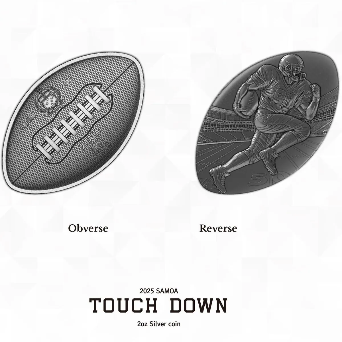 Znany producent metali szlachetnych KOMSCO przedstawia ciekawą propozycję dla wszystkich miłośników futbolu- Touch Down. została wybita w kształcie futbolówki i celebruje pasję, moc i ducha futbolu amerykańskiego. Moneta łączy w sobie sportowe emocje, pasję i ponadczasową wartość inwestycyjną, a jej dynamiczny projekt przyciąga uwagę zarówno kolekcjonerów, jak i miłośników sportu.