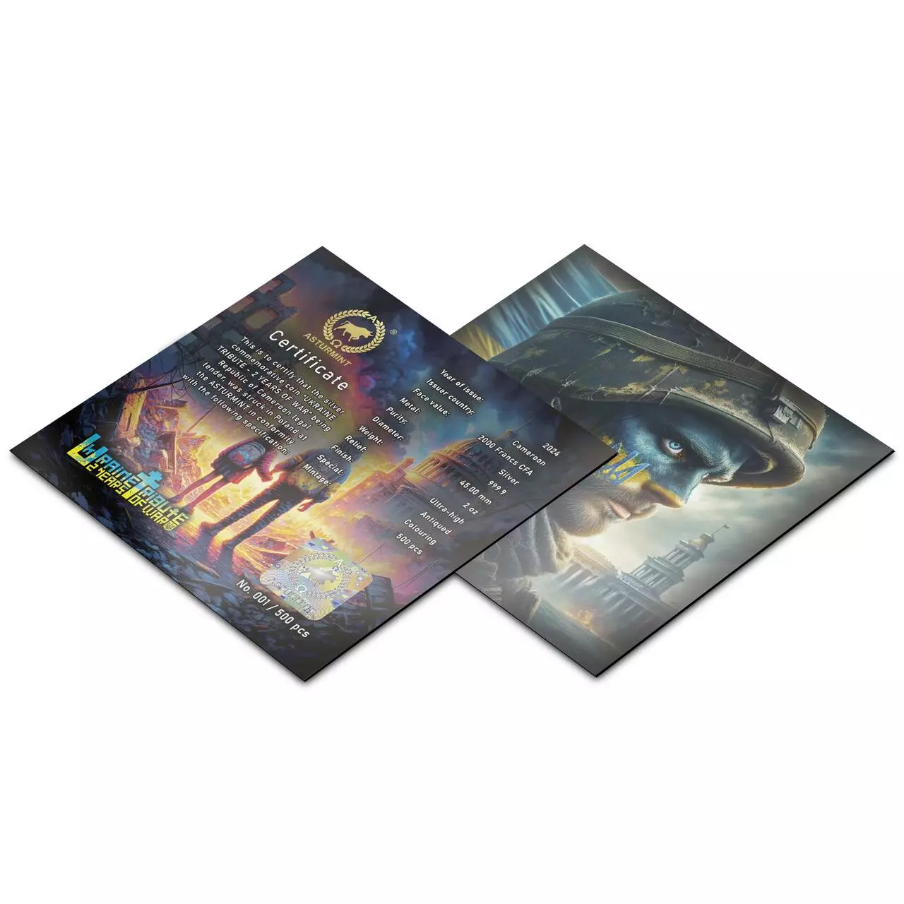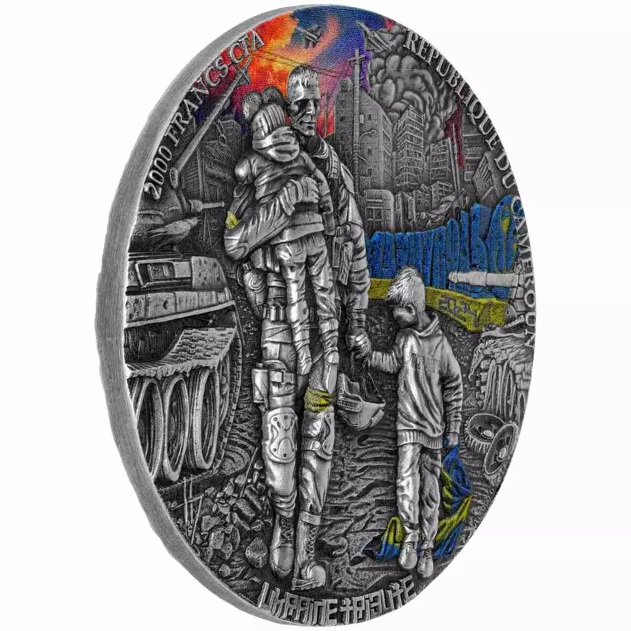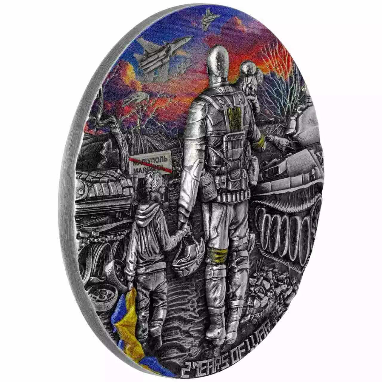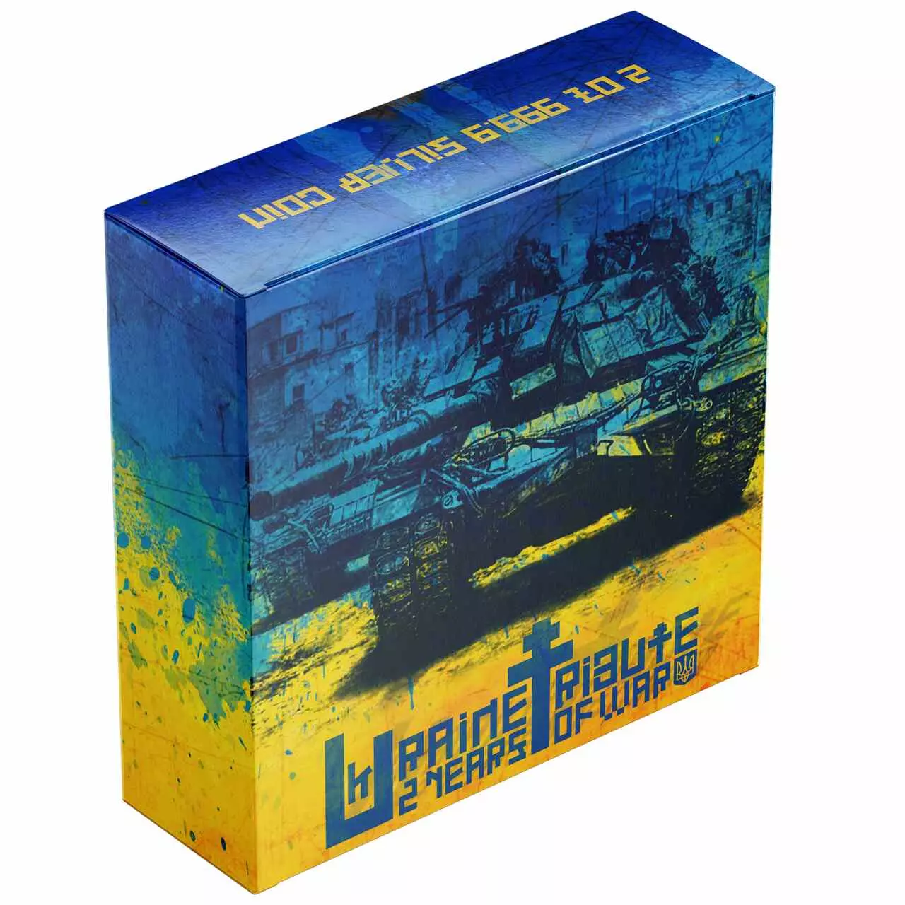 Ukraine Tribute został wybity ze srebra najwyższej próby w jakości ultra high relief po obu stronach. Walor o wadze dwóch uncji posiada kolorowy.