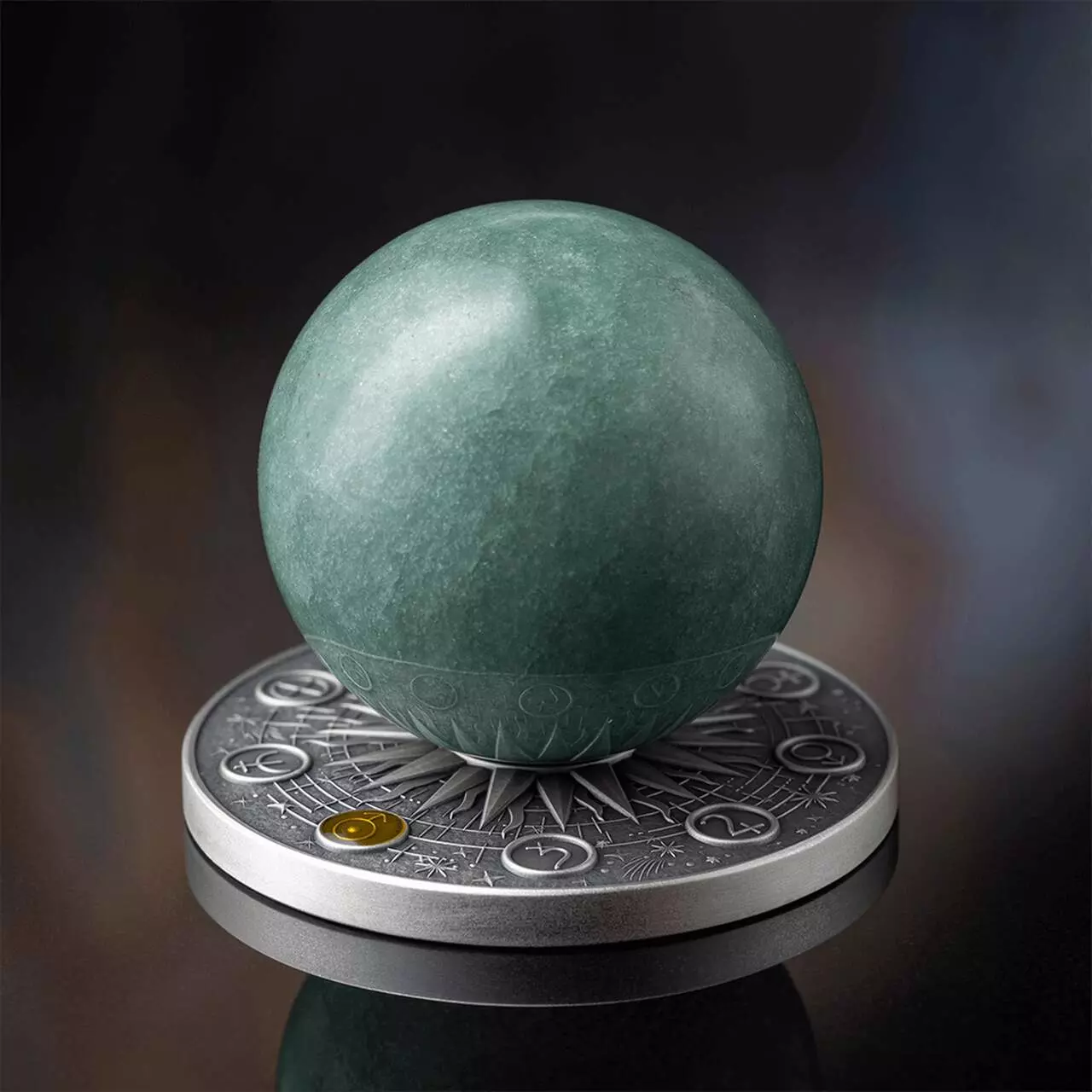 Motyw „Uran Solar System”: Na awersie monety znajduje się precyzyjne odwzorowanie planety Uran, w tym jej charakterystyczna błękitno-zielona barwa, efekt obecności metanu w atmosferze. Moneta uchwyca również unikalne pochylenie planety, która toczy się niemal na boku, dzięki czemu jej sezony trwają po 21 lat.
